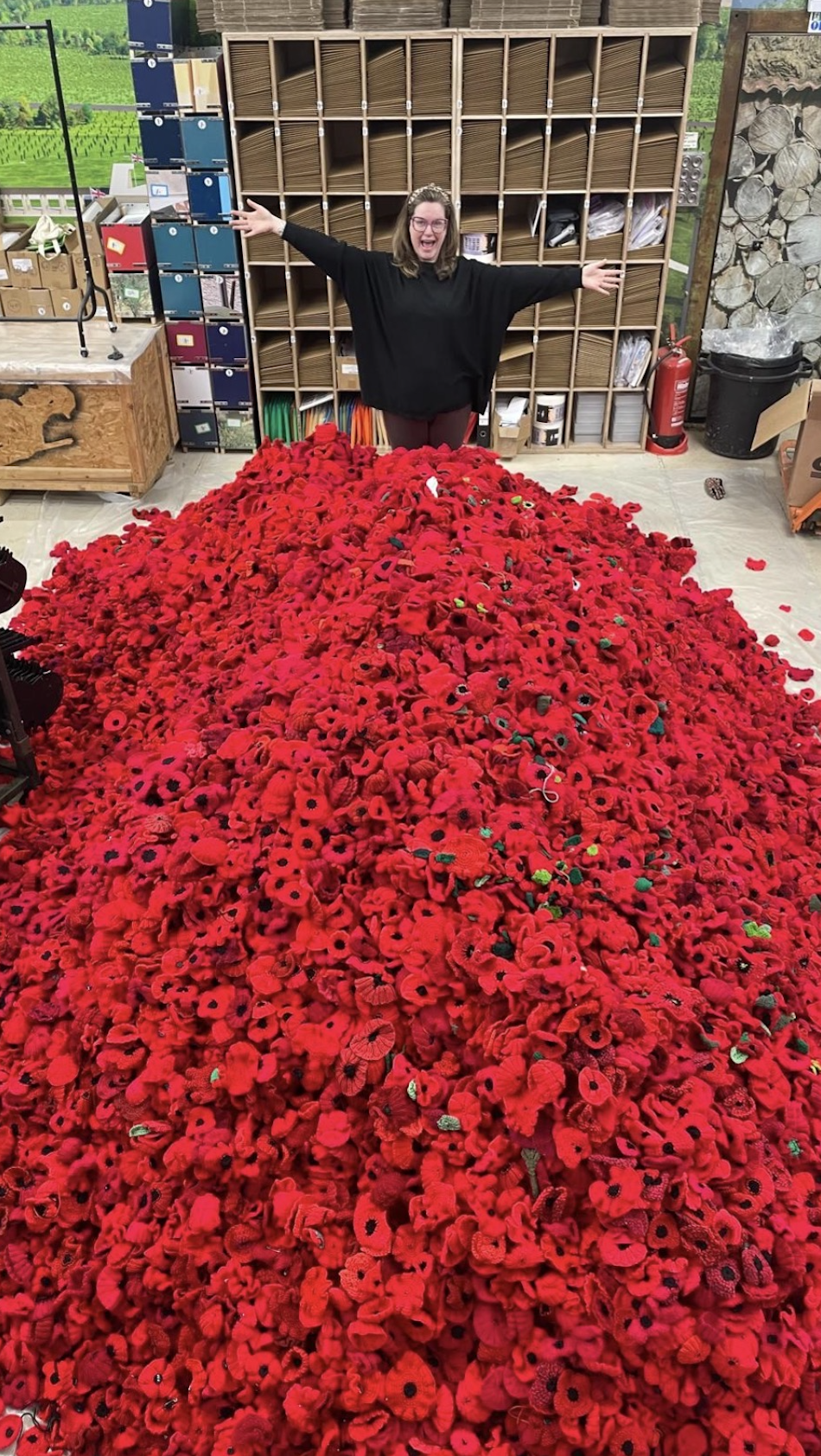 The response has been nothing short of incredible… 110,849 poppies. One hundred and ten thousand, eight hundred and forty-nine. Every day, parcels were unpacked and added to a growing pile, constantly mixed and moved as more and more kept arriving.