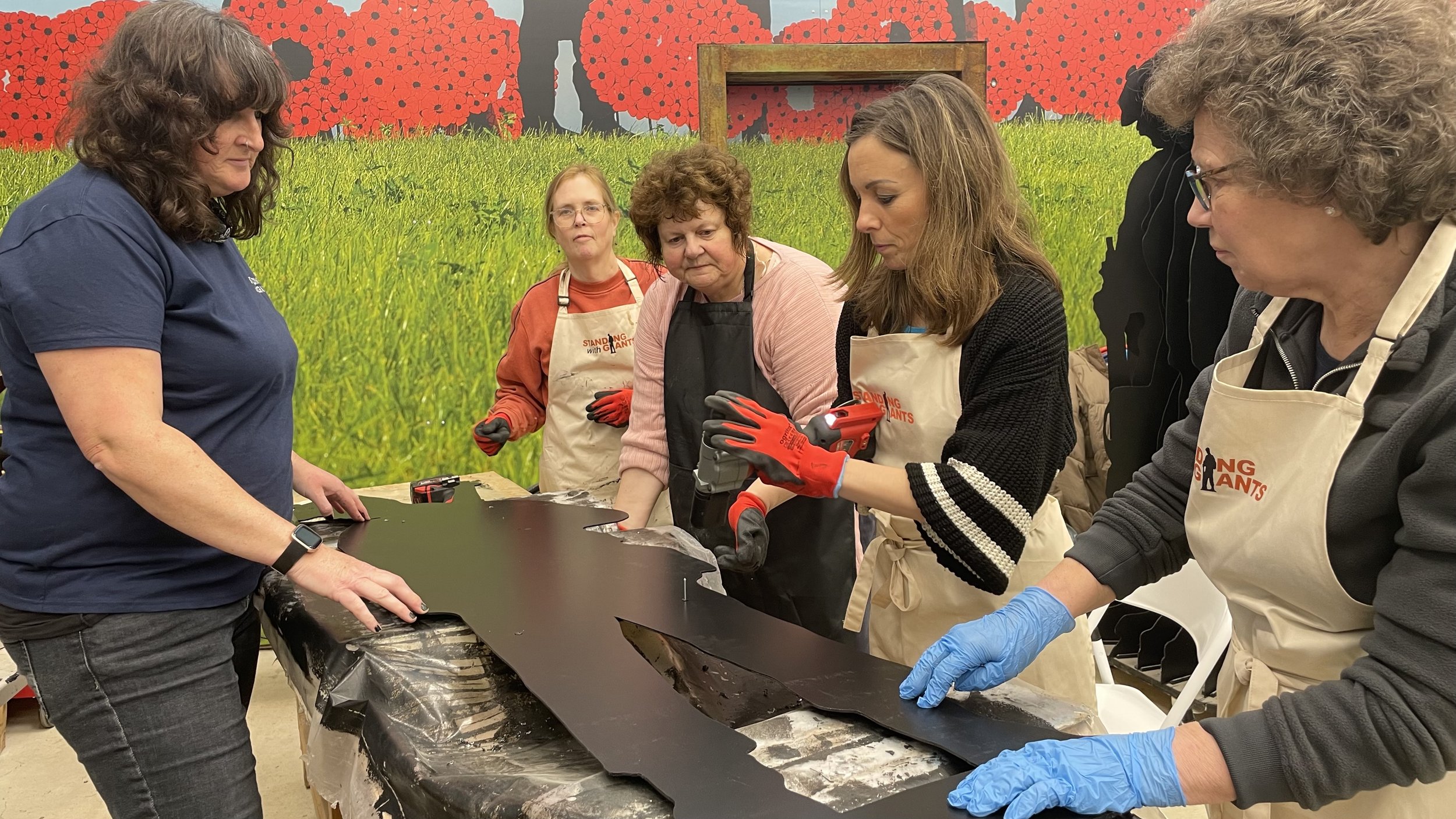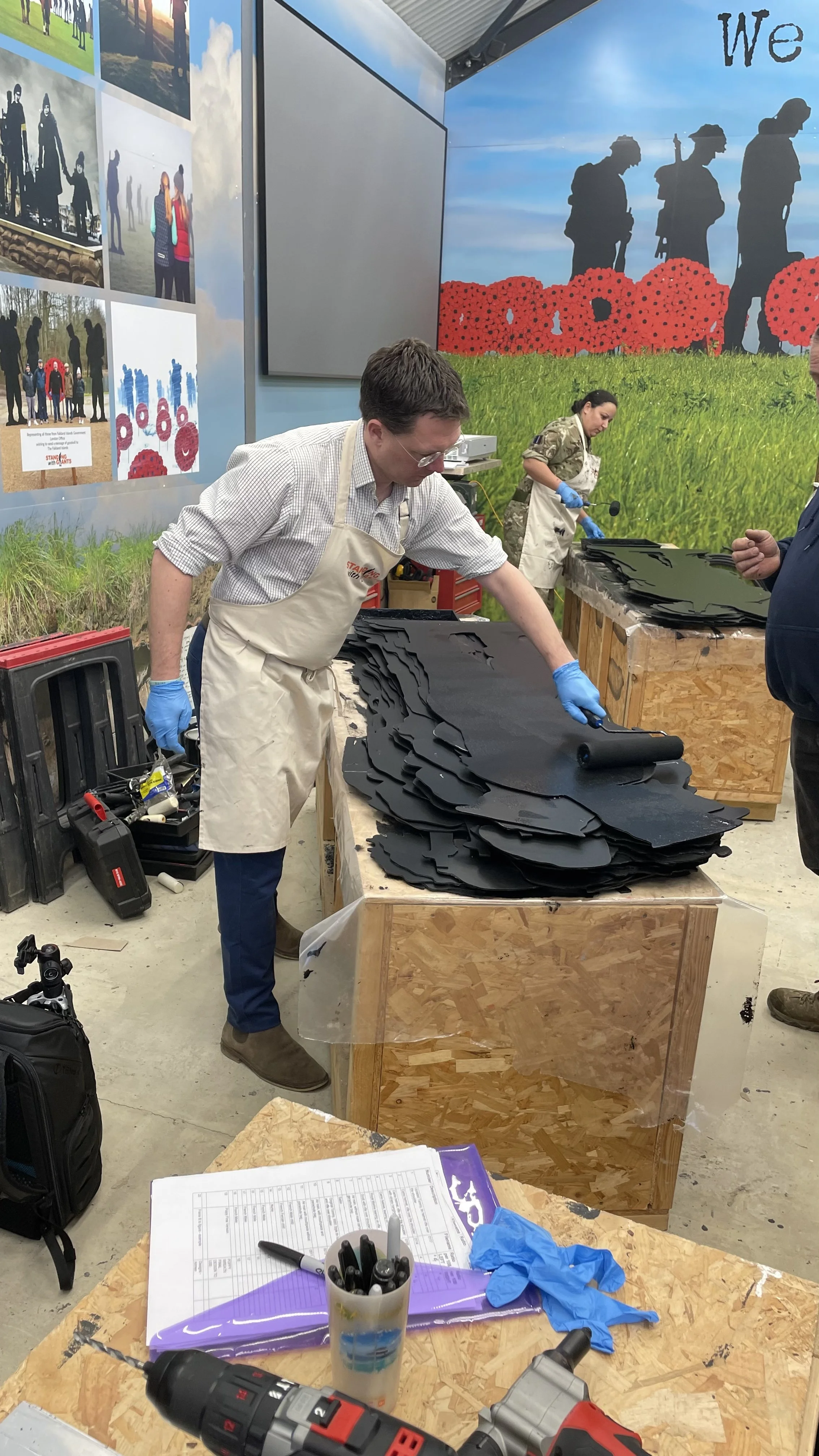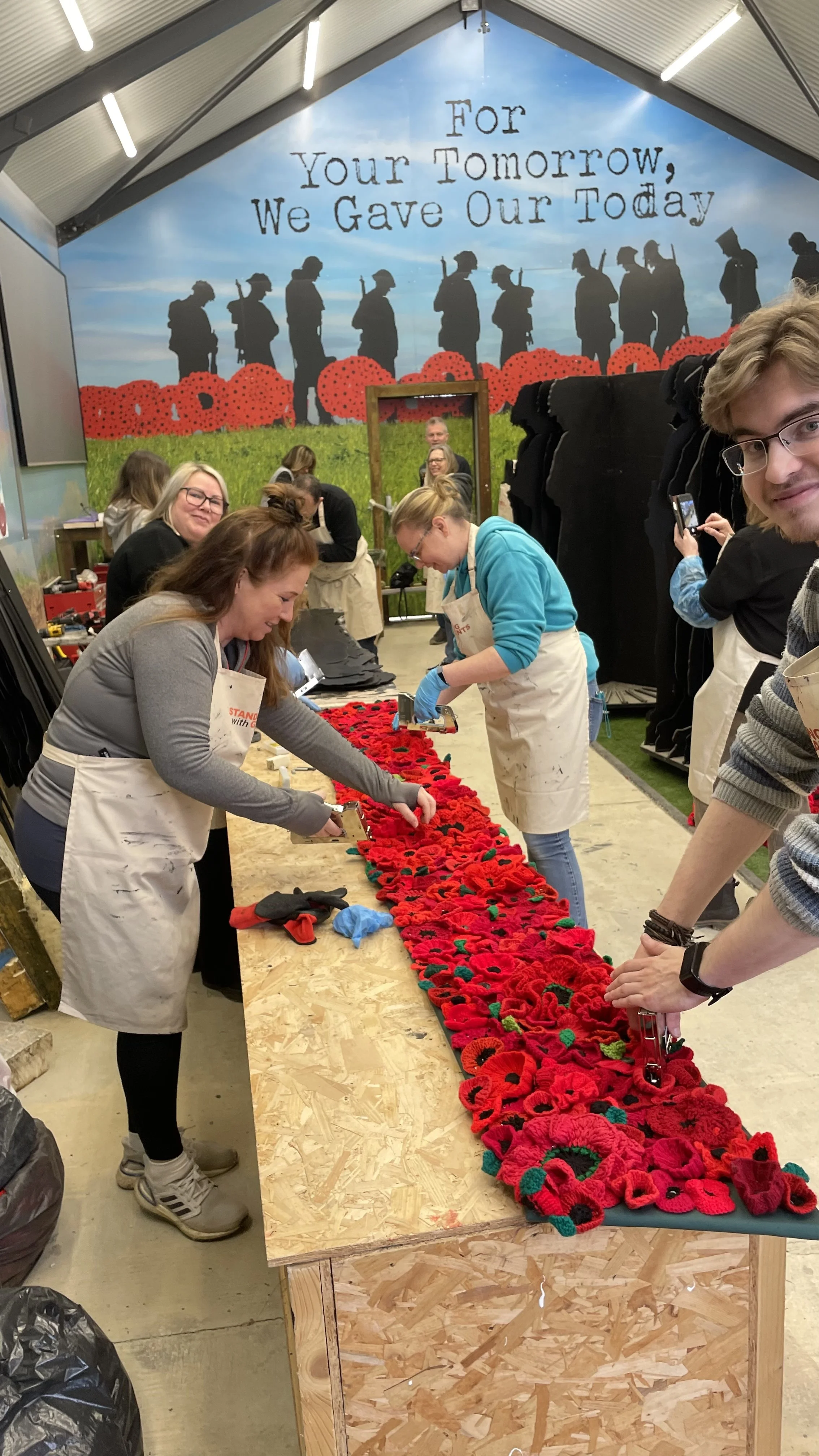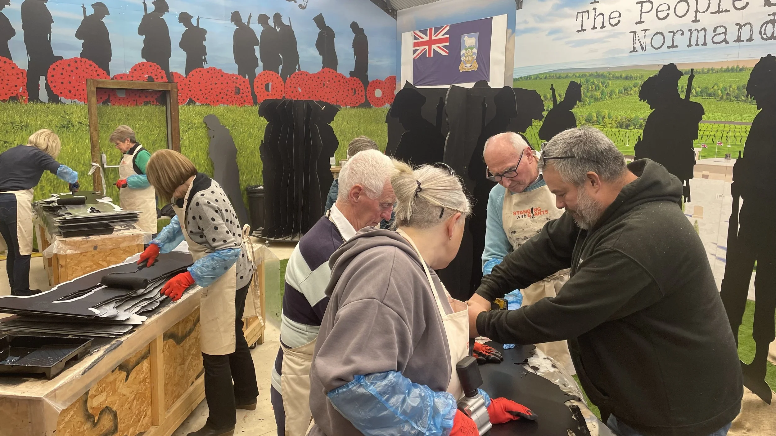 Over the past 4 years we have made the components for 1,475 life-size soldier silhouettes, and during January - March 2024 we invited organisations and community groups to visit us in Oxfordshire to help paint and assemble a number of figures. We are a very inclusive group, and aimed to get as many different organisations and people to participate so they can be part of this momentous occasion.